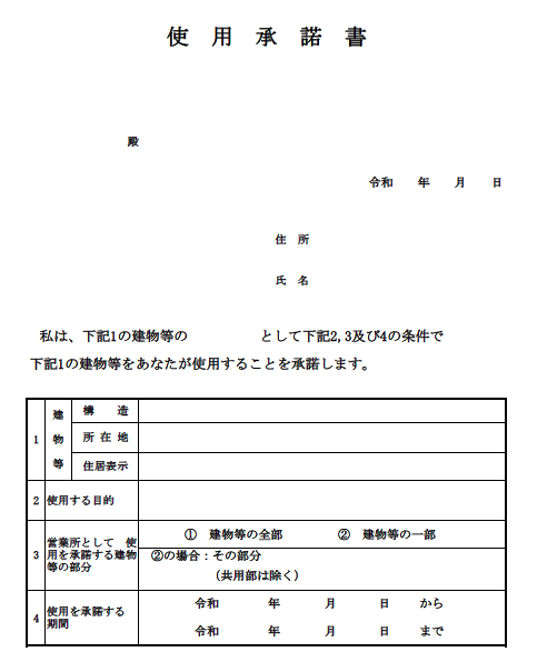 使用承諾書は、大家さんから、アダルト配信事業の事務所として使うことを許可された旨が記載された書類です。