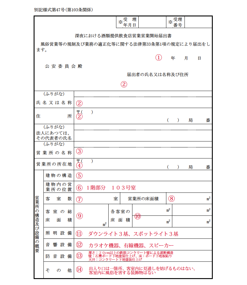 本日は、この深夜酒類提供飲食店営業開始届の書き方について説明していきます。