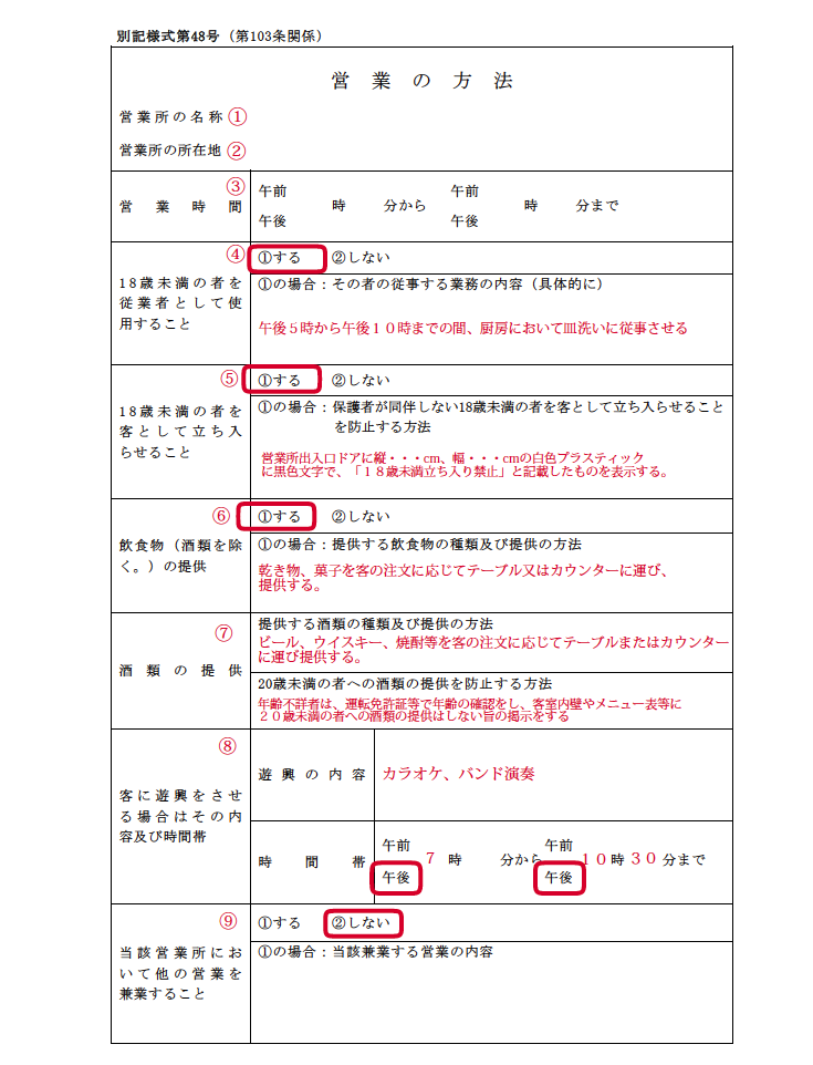 ③深夜営業の場合は、営業時間に制限はありません。例えば24時間営業でもOKです。